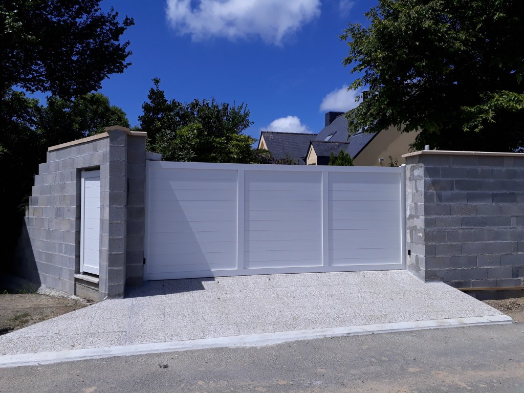 Portail coulissant en aluminium Remplissage plein à lames horizontales Blanc Technal